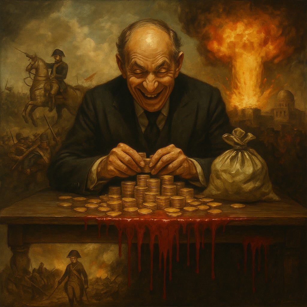 Así como los Rothschild antaño asesoraban a los reyes y respaldaban los bonos de guerra, los belicistas modernos llevan adelante el mismo ritual de sangre por oro , aunque con hojas de cálculo digitales y transmisiones de CNN.